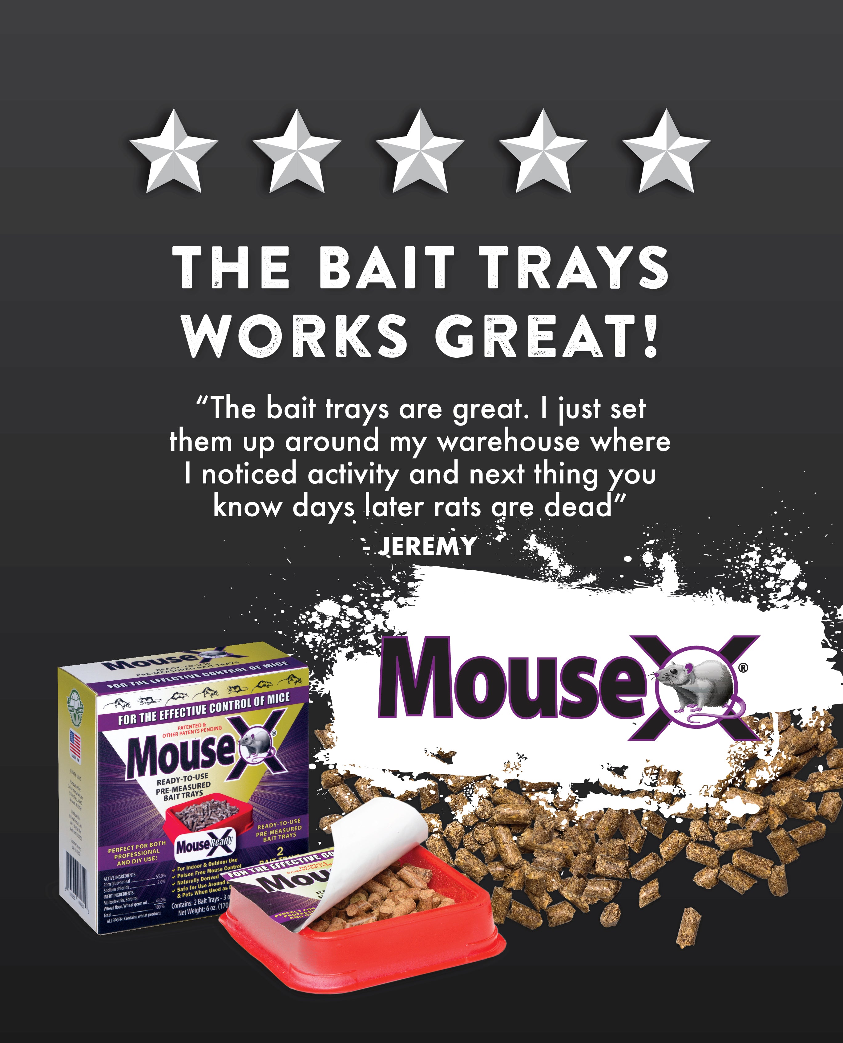 MouseX® works from the inside out to exterminate mice and rats, then dries them out after death to reduce odor by as much as 90%.