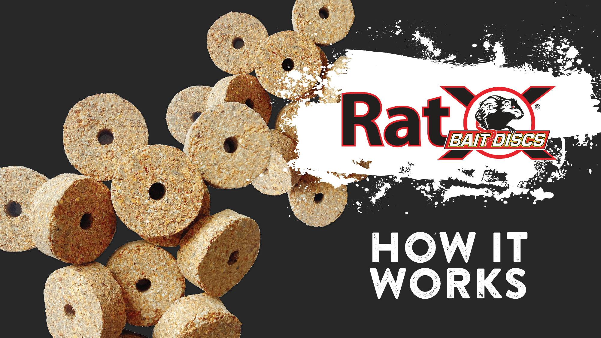 RatX Bait Discs are formulated with natural ingredients blocking thirst signals in rats. Once they eat the bait, rats gradually stop wanting to eat or drink. This leads them to dehydrate and eventually die.