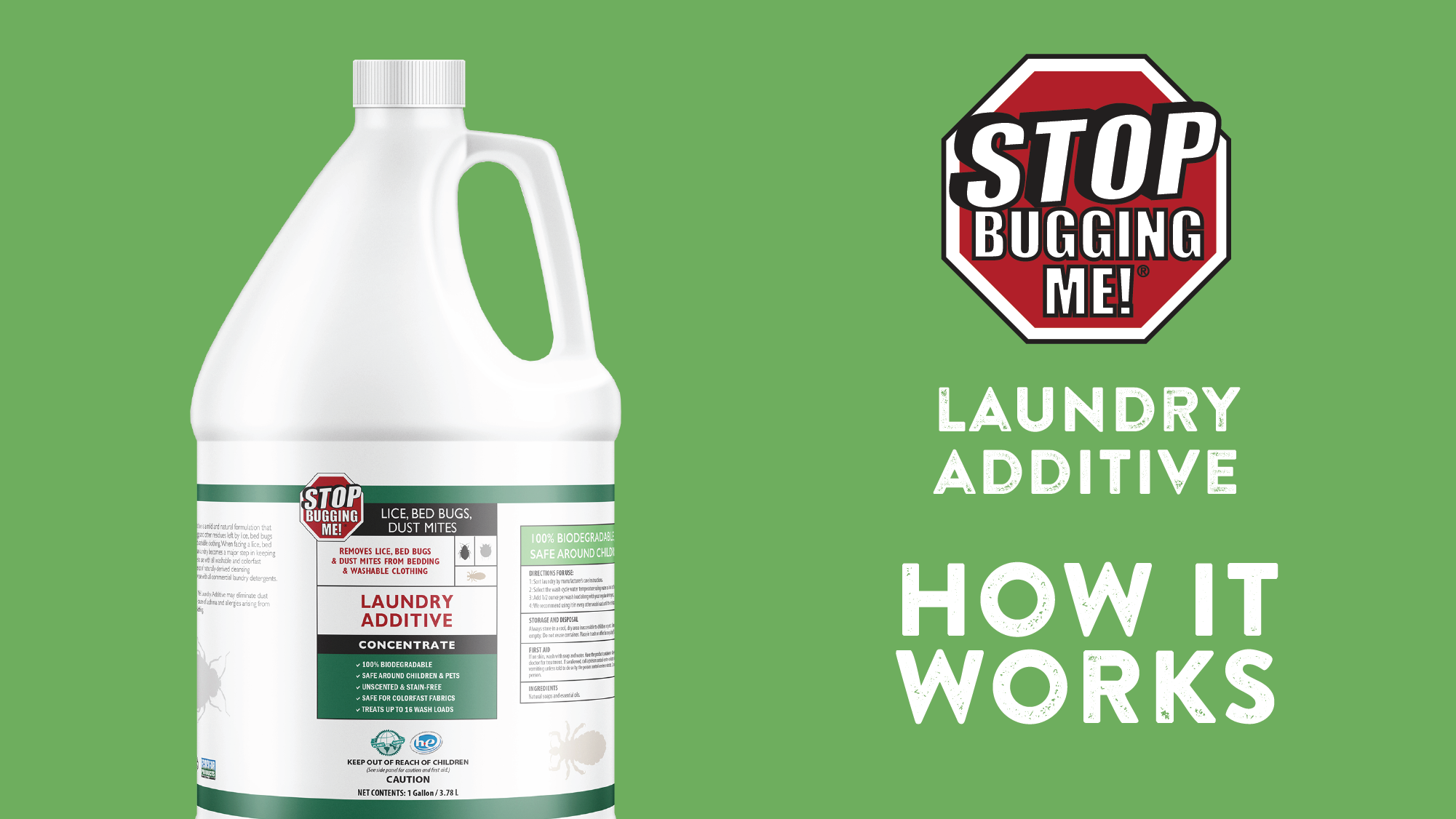 Bed bug or dust mite problem? Fortunately, Stop Bugging Me!® Laundry Additive Concentrate is on the case. Its mild formulation is safe to use with all washable and colorfast fabrics when used as directed, and you can immediately use treated areas and clothing once they’re dry. Stop Bugging Me!® Laundry Additive Concentrate is also stain-free, so it won’t ruin clothing or fabric.